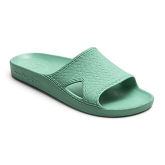 Hygiene-und Badesandale, aus grünem PVC, mit Anti-Fusspilz Behandlung, waschbar, orthopädisches Fussbett, ideal für Pharma-, Chemie- und Lebensmittelindustrie, in Doppelgrössen erhältlich.