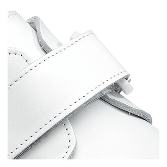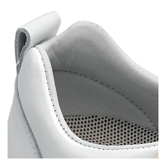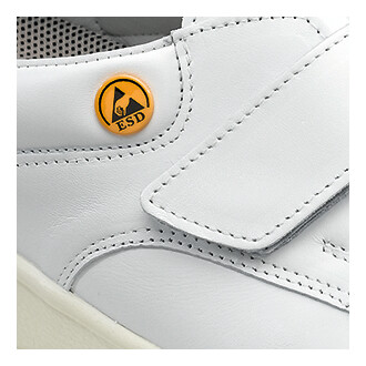 Chaussure professionelle pour hommes ESD forme naturelle, tige en cuir fleur de vachette, blanc, doublure en cuir nappa souple, fermeture Velcro, semelle intérieure PUR DRY-TEC confortable, amortissement triple intégré, semelle en caoutchouc/PUR, antidérapante, antistatique, protection ESD max. 35 M-Ohm.