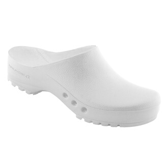 Chiroclogs Professional, en polyuréthane léger, au design large et confortable. Doublure non abrasive pour un meilleur climat du pied, pas de contact direct avec le polyuréthane, lavable et désinfectable jusqu'à 70°C, ouvertures de ventilation pour un meilleur climat du pied, semelle de forme anatomique avec barre d'appui pour un maintien sûr, antistatique, testé conformément à la norme EN ISO 20347:2012 SRC